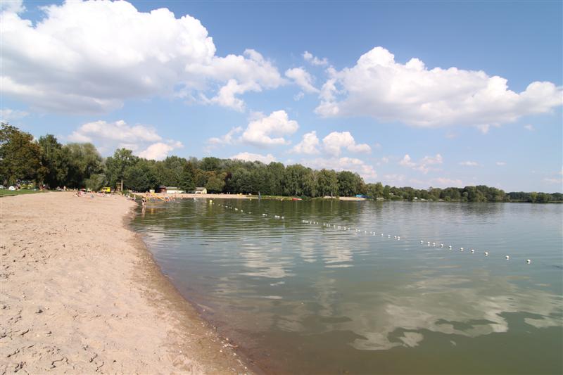 Pláž pro rodiny s dětmi je oddělena od hlavní pláže lávkou přez potok protékající jezerem.