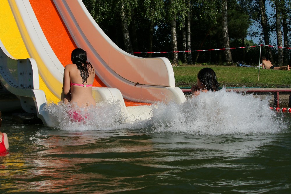 Hlavní pláž koupaliště je asi 1.800 m2 velká písečná plocha a 9.000 m2 travnatá plocha.